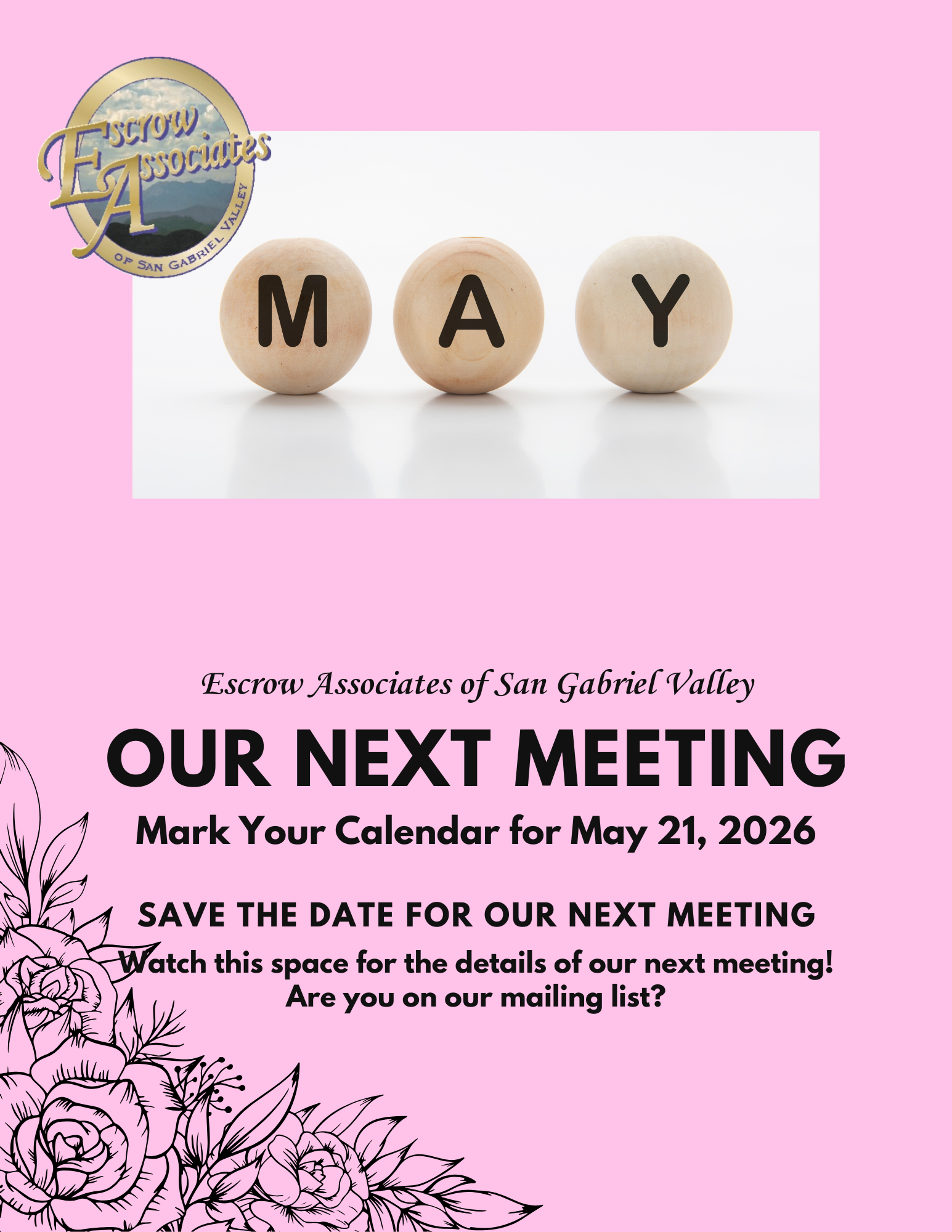 DISCLAIMER: Presentations at our dinner meetings, seminars, workshops, and virtual events are for informational purposes only and are not and may not be construed as legal advice. EASGV is a professional organization, not a law firm, and does not offer legal services of any kind. No third-party entity may rely upon anything contained in meetings, seminars, and workshops when making legal and/or other determinations regarding title, escrow and related practices. You should consult with an attorney prior to embarking upon any specific course of action.